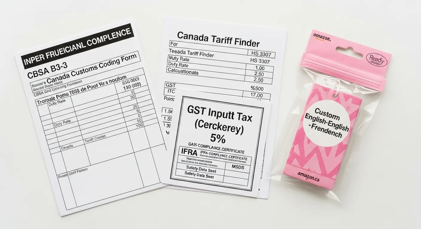 - CBSA customs clearance at Vancouver or Toronto. Your licensed Canadian customs broker files the B3-3 Canada Customs Coding Form with CBSA, pays the applicable MFN duty, and presents the MSDS for fragrance goods. The 5% federal GST is assessed at entry on your CIF value plus duty and is recovered in full as an input tax credit on your next GST/HST return. Standard clearance for complete documentation takes 1 to 3 business days.
