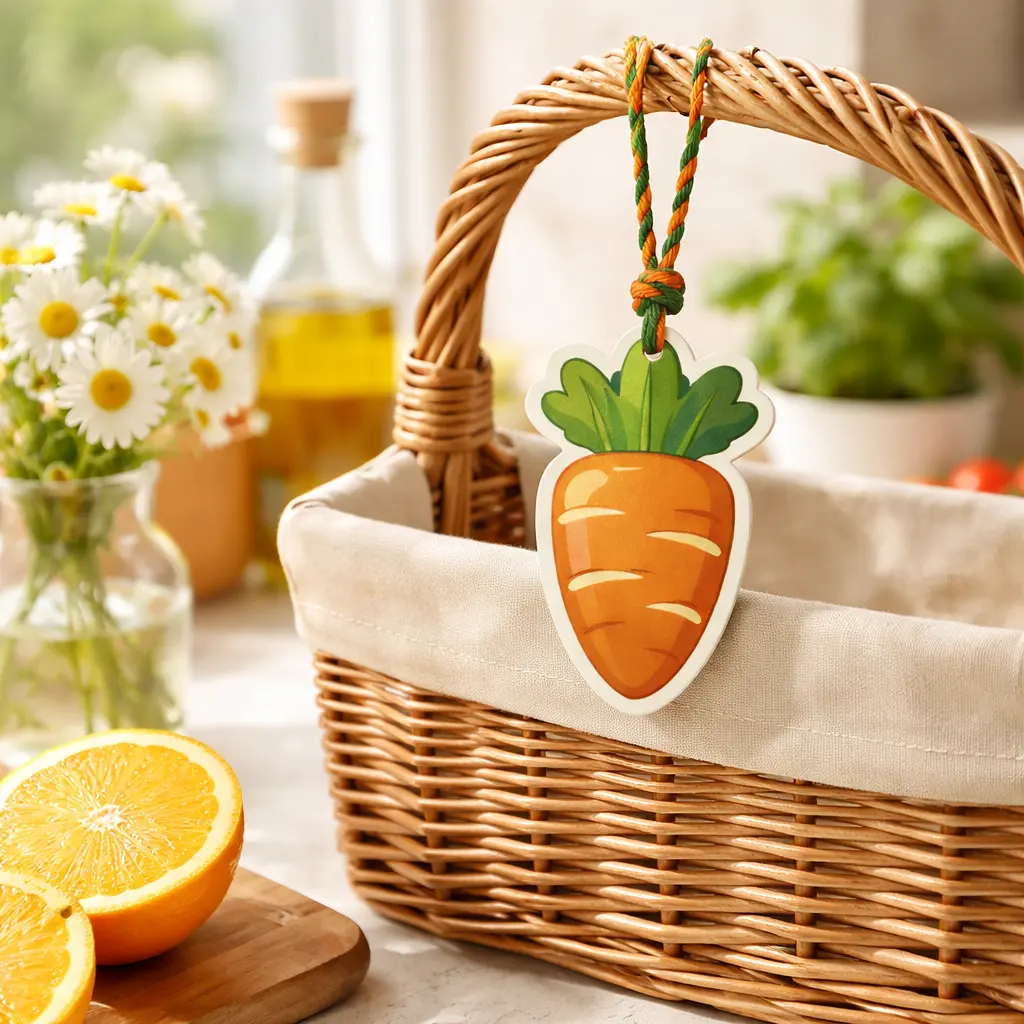 Description Designed for both visual appeal and retail performance, this carrot-shaped hanging air freshener comes with eye-catching custom packaging that enhances product presentation and brand value. The combination of a natural-inspired design and clean layout makes it ideal for store display, gift sales, and promotional use. Crafted with a 3-layer structure (Paper + Sponge + ... Read more