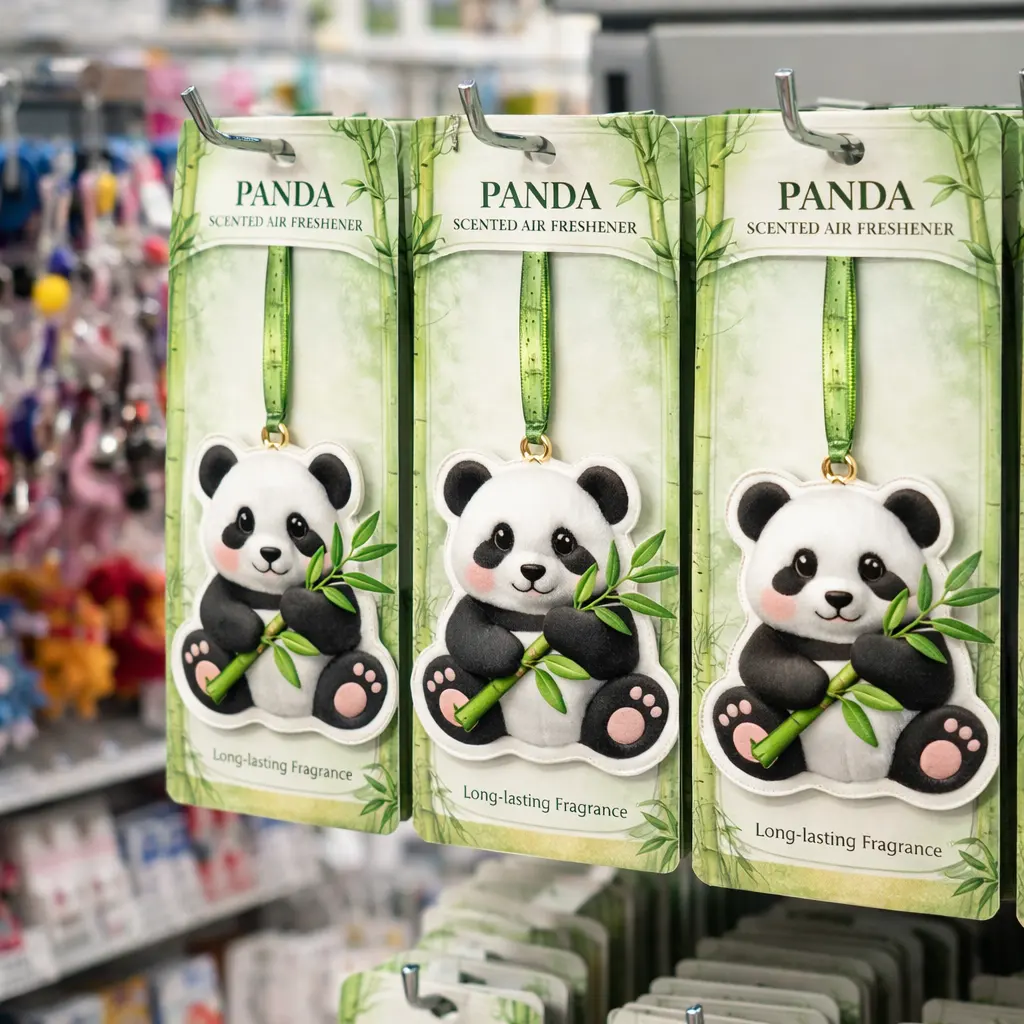 Cute Panda Bamboo Hanging Air Freshener – Long Lasting Paper Scent Card