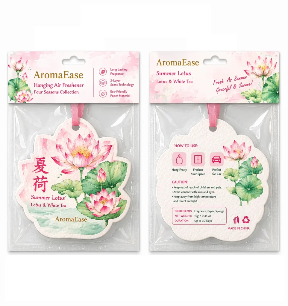 At AromaEase, sustainability meets premium craftsmanship. As a professional manufacturer specializing in paper air fresheners, AromaEase offers a complete eco-friendly solution for brands and businesses.