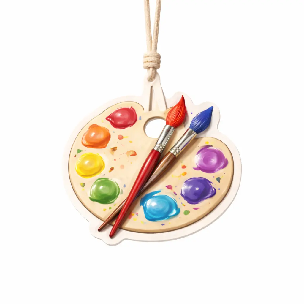 Bring a creative and colorful atmosphere into your space with this artist palette hanging air freshener. Designed with vivid paint details and realistic brush elements, it adds a unique artistic touch while delivering a pleasant and long-lasting fragrance.