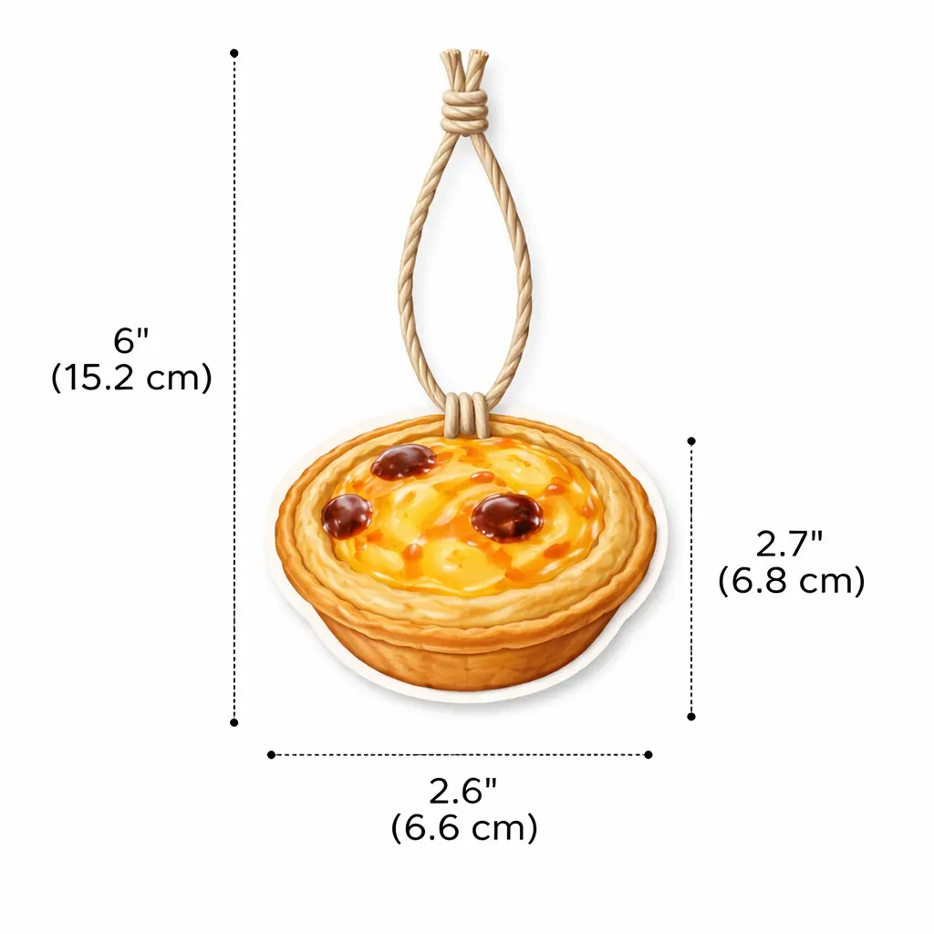Bring a warm and delicious touch to your space with this Egg Tart Hanging Paper Air Freshener. Inspired by the classic dessert, its realistic pastry design adds a unique and eye-catching element, perfect for retail displays, gift sets, and lifestyle decoration.