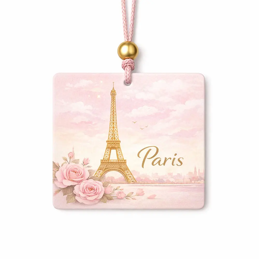 The Romantic Paris Fragrance Card captures the timeless charm and elegance of Paris in a beautifully designed scented air freshener. Featuring a delicate illustration of the Eiffel Tower paired with soft blooming roses, this design evokes a dreamy and romantic atmosphere, perfect for adding a touch of sophistication to any space.