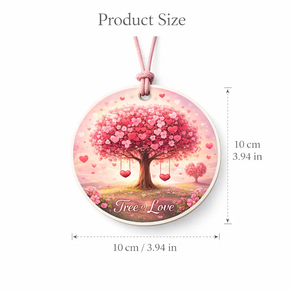 Elevate your space with this romantic Tree of Love car air freshener, a heartfelt gift for anniversaries, Valentine’s Day, or any love-filled occasion. Featuring a stunning design of a lush tree blooming with vibrant pink and red hearts, paired with the elegant "Tree of Love" lettering, this scented ornament brings a warm, loving vibe to your car, closet, or home. Infused with long-lasting fragrance, it not only freshens the air but also serves as a charming decorative piece. Perfect for gifting to your partner, family, or friends, this love-themed air freshener combines sweet scent and romantic decor in one delightful piece.
