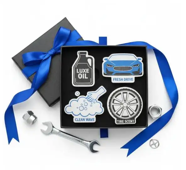 Daily use is powerful. Every time a driver starts the engine, they see and smell your brand. That is why Promotional Car Air Fresheners work so well for dealerships, service workshops, and car wash centers. They are small, useful, and always present. A gift set with industry-themed shapes - oil bottle, sports car, brake disc, and wash foam - feels relevant and fun. It fits the moment when a car is delivered, serviced, or cleaned. This simple format creates repeat impressions without pressure or pushy sales. The result is steady recall and stronger loyalty.