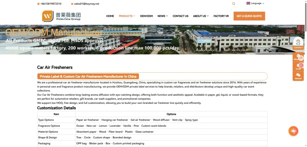 Poleview focuses on OEM/ODM air fresheners and customized branding solutions.