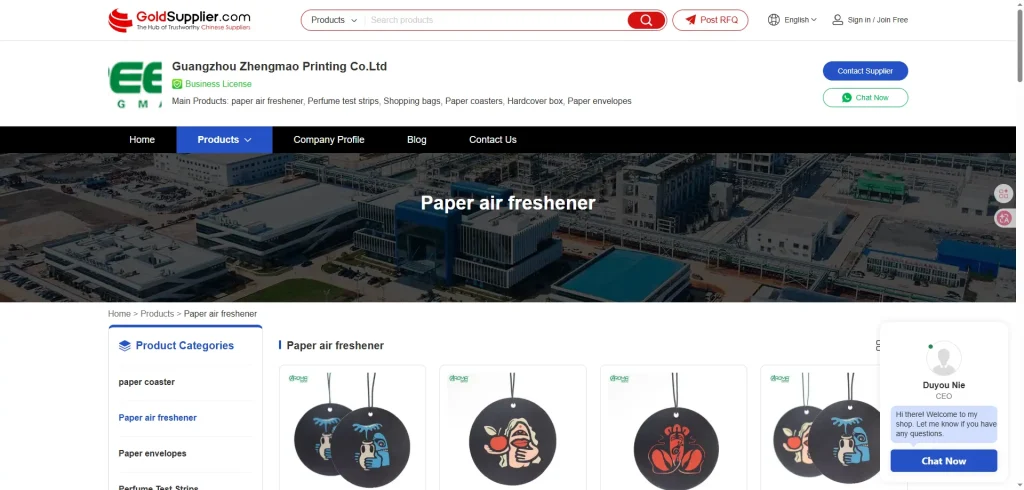 A printing-focused supplier that integrates paper air freshener production with custom packaging.