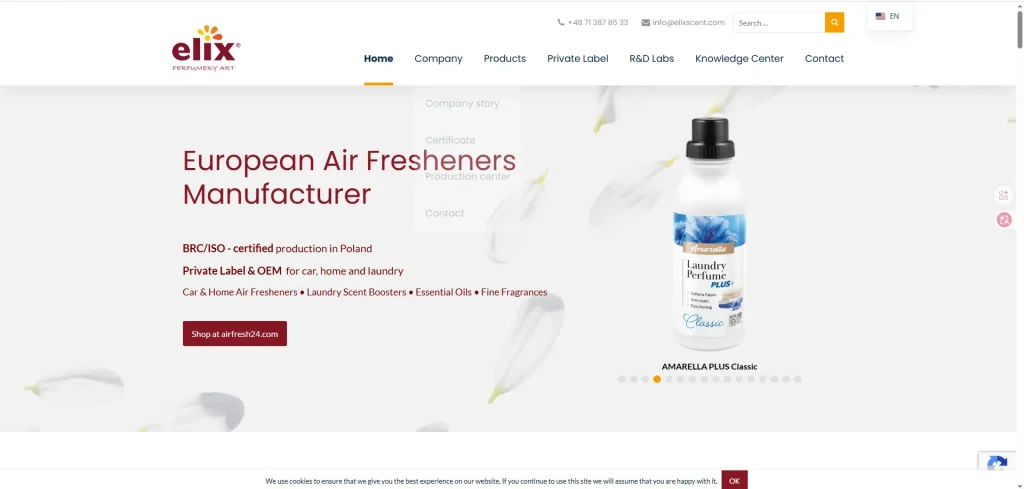 A leading European fragrance manufacturer with 25+ years experience and strong compliance standards.