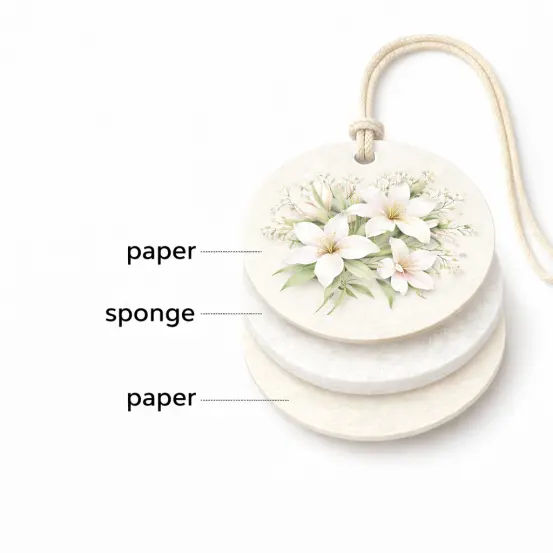 The sponge core absorbs fragrance oil, while the outer paper layers slowly release the scent over time, providing a long-lasting fragrance experience (usually 30–45 days).